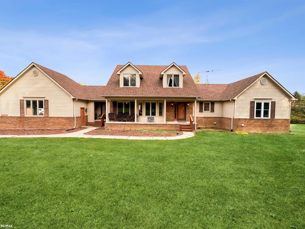 Welcome to this beautifully maintained 4-bedroom, 3.5-bath home nestled on just over 10 peaceful acres. Step inside to find a bright and inviting layout featuring a first-floor master suite, first-floor laundry, and an open living area with a cozy gas fireplace and abundant natural light. The spacious kitchen and dining areas are perfect for entertaining, while hardwood floors and casement windows add warmth and character throughout. Recent updates include a roof (2021, 30-year shingle), furnace (2017), hot water tank (2014), well pump (2021), and sump pump (2023). Additional highlights include a Generac whole-house generator, reverse osmosis system (serviced 2019), central AC, whole-house attic fan, and an oversized garage providing ample space for parking and storage. Enjoy the serene outdoors from the large back deck with a power awning, overlooking the private, tree-lined backyard. The covered front porch, beautiful gardens, and mature apple and pear trees complete this idyllic setting. Don't miss this rare opportunity to own a private slice of country living with modern comforts and updates throughout!